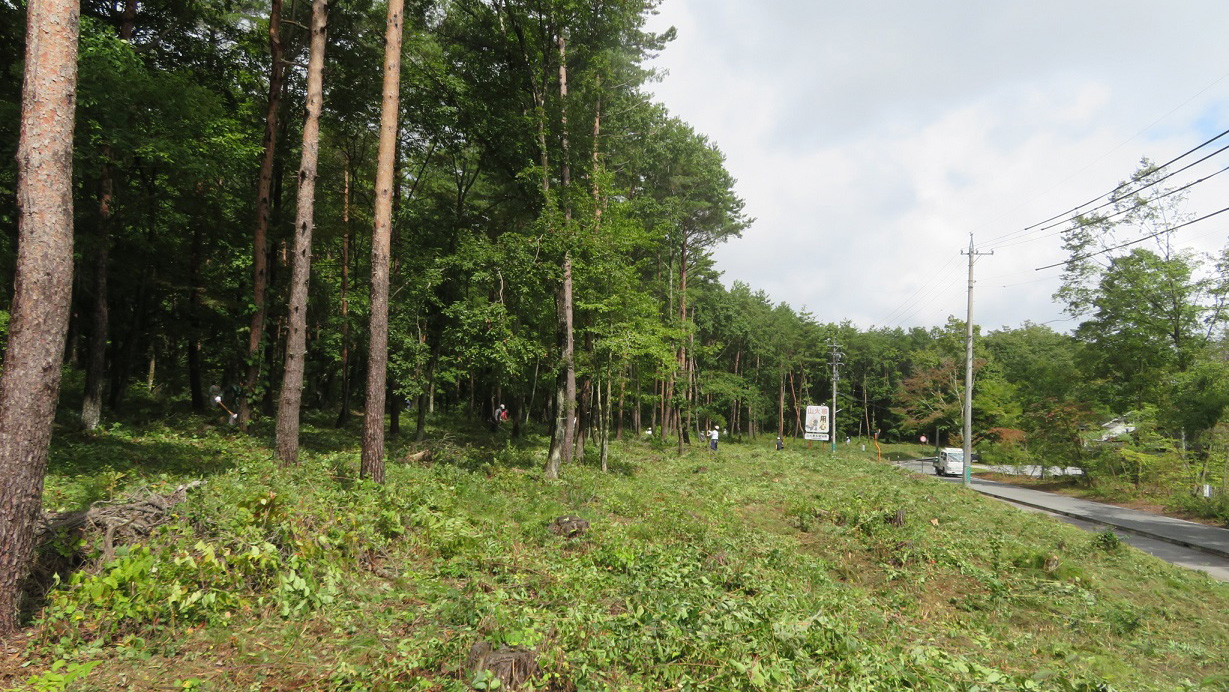 高さ60㎝程の藪があればクマは身を隠しながら移動ができます。鉢合わせを防ぐために、見通しの悪い藪は積極的に刈り払いましょう。