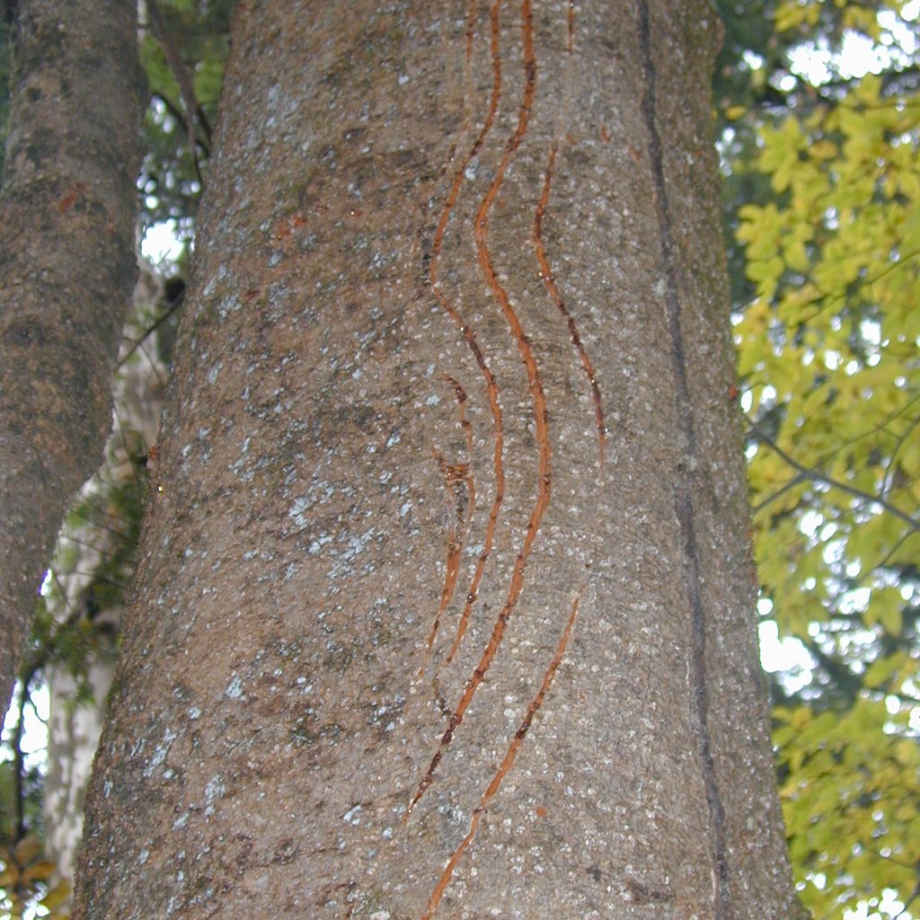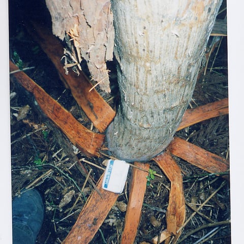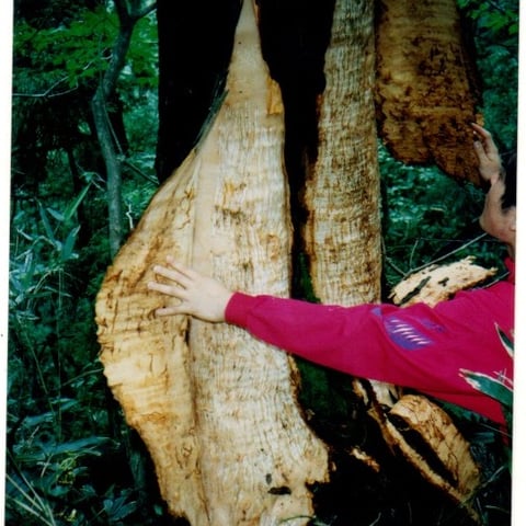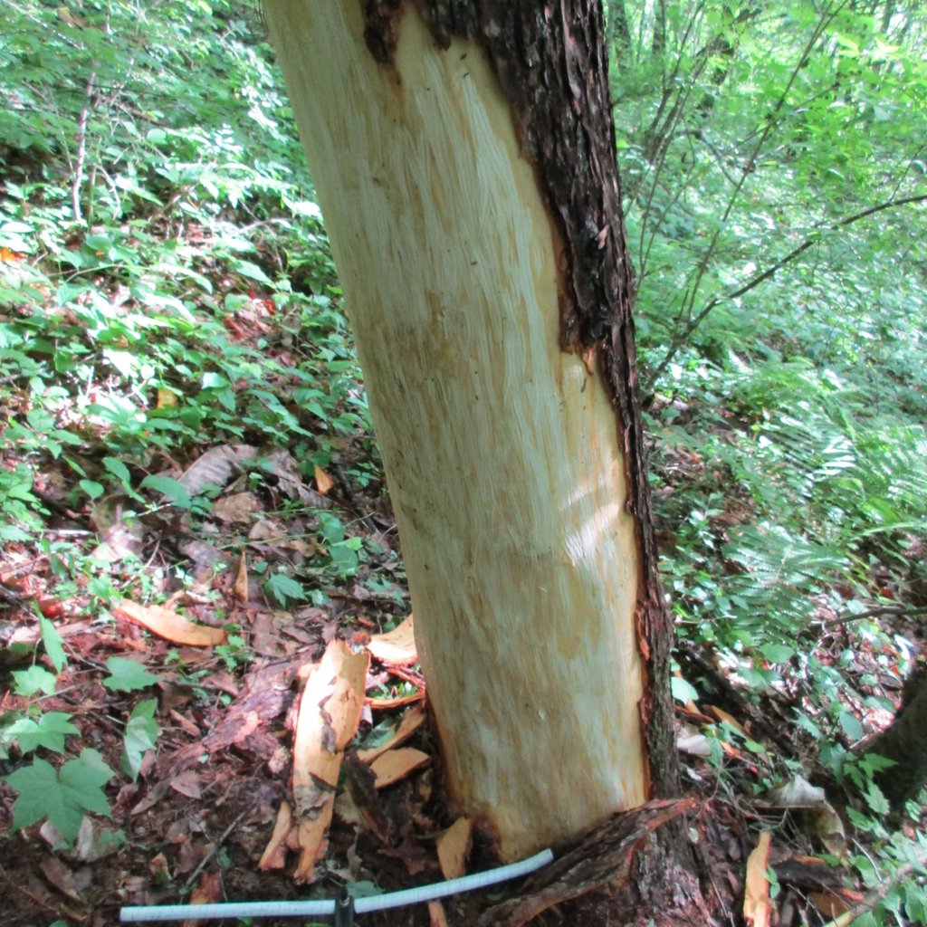 バナナの皮の様に剥がされた樹皮剥ぎ