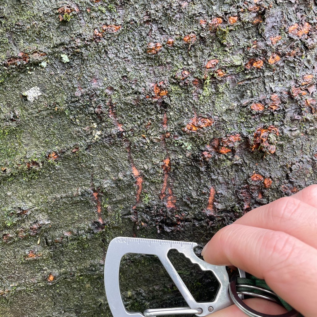 古い爪痕は木の成長と共に爪痕も大きくなる。