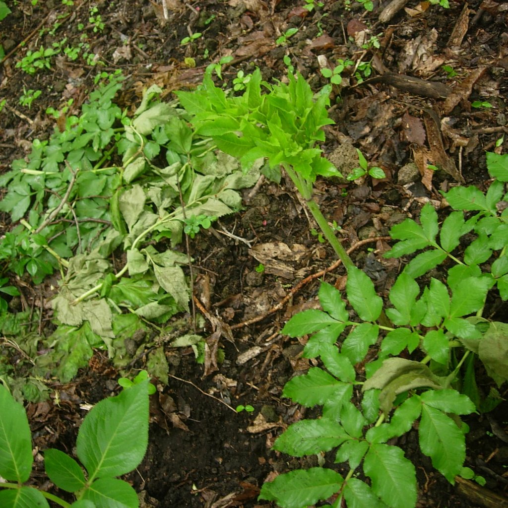 シシウドを食べた跡。茎を食べている為、葉は地面に落ちて茎だけ食べられているような跡はクマの可能性が高い。