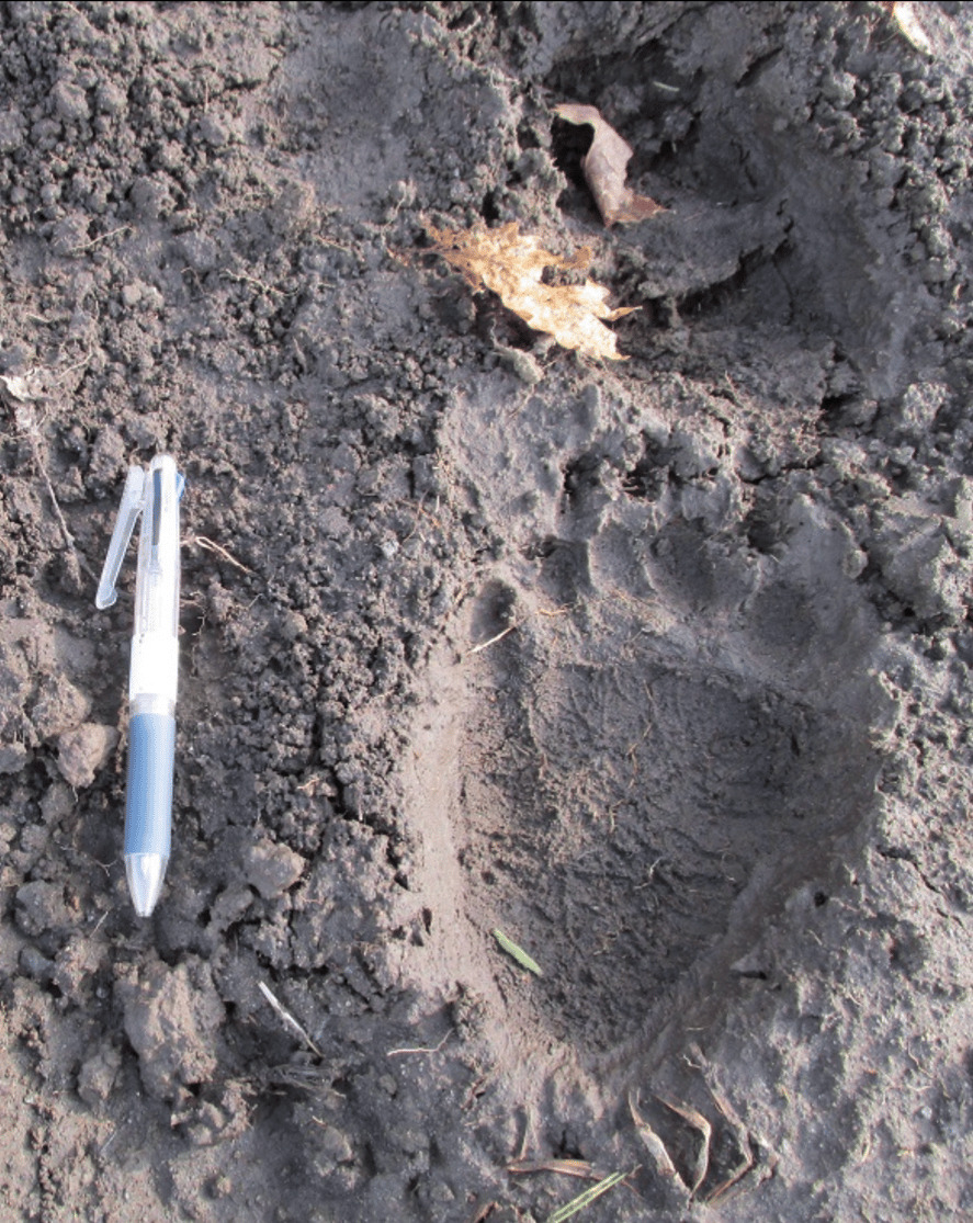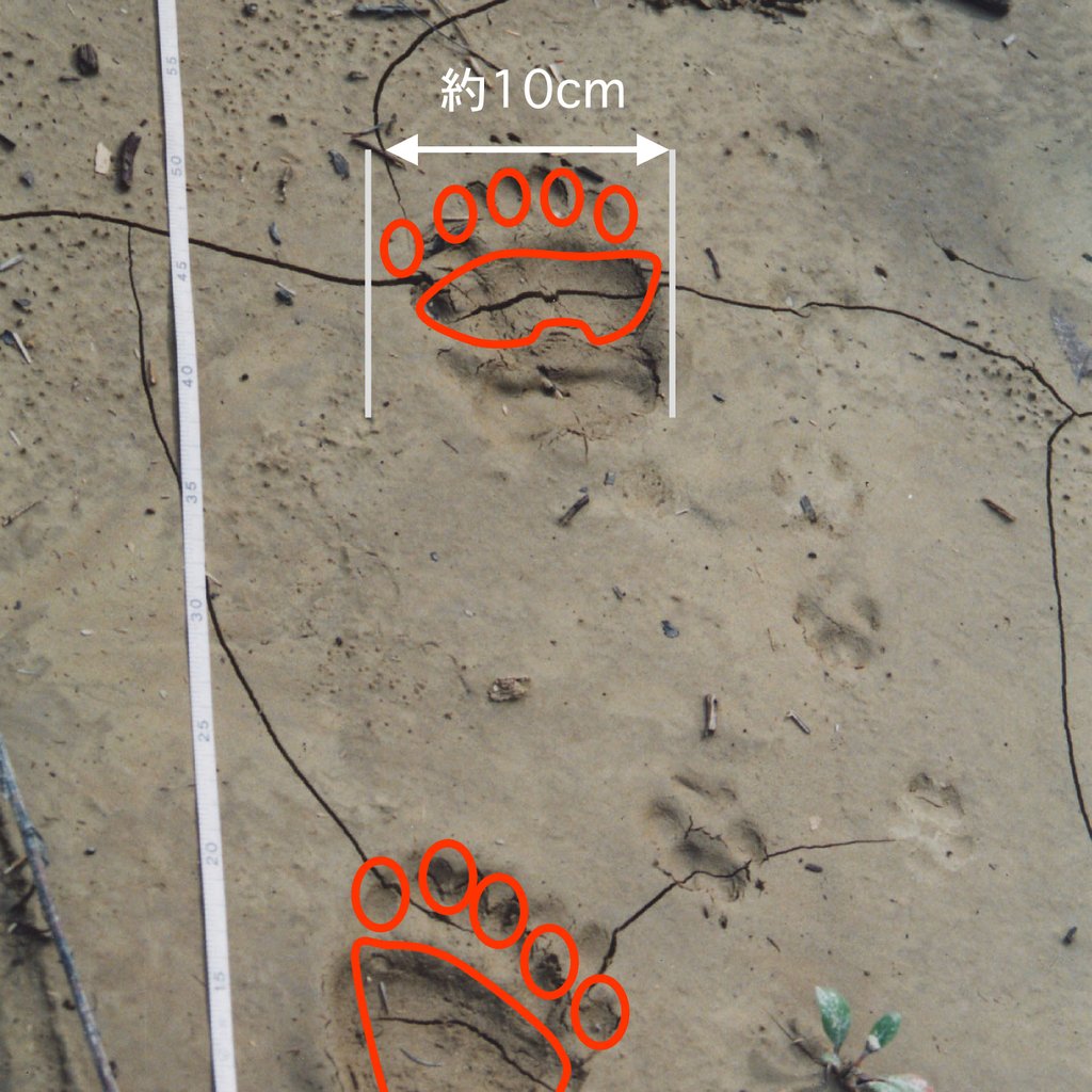 写真の様にはっきりと足跡が付くのは珍しい。内またで歩くのが特徴的。