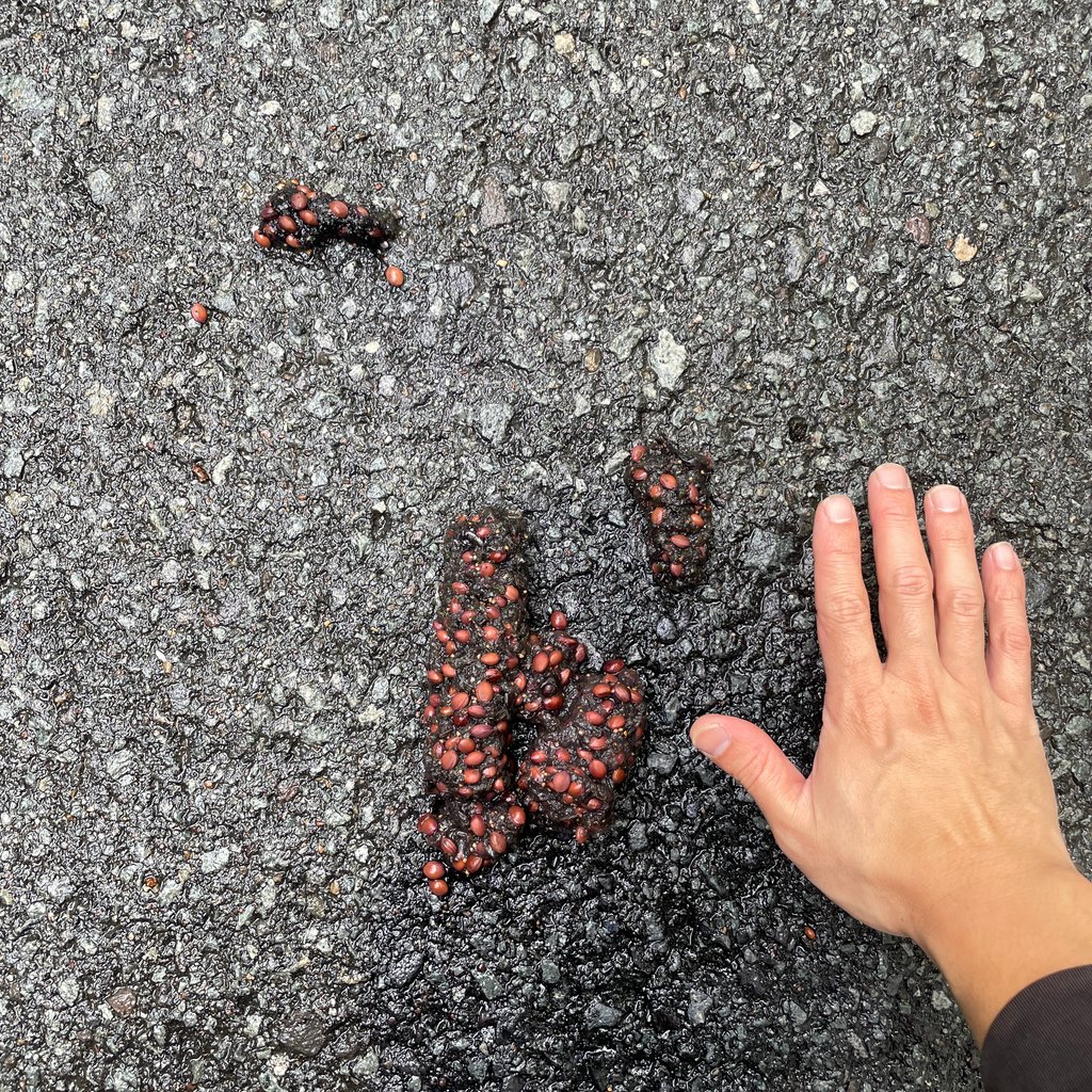 ヤマザクラを食べた跡の糞。種子のほとんどはそのまま排出される。