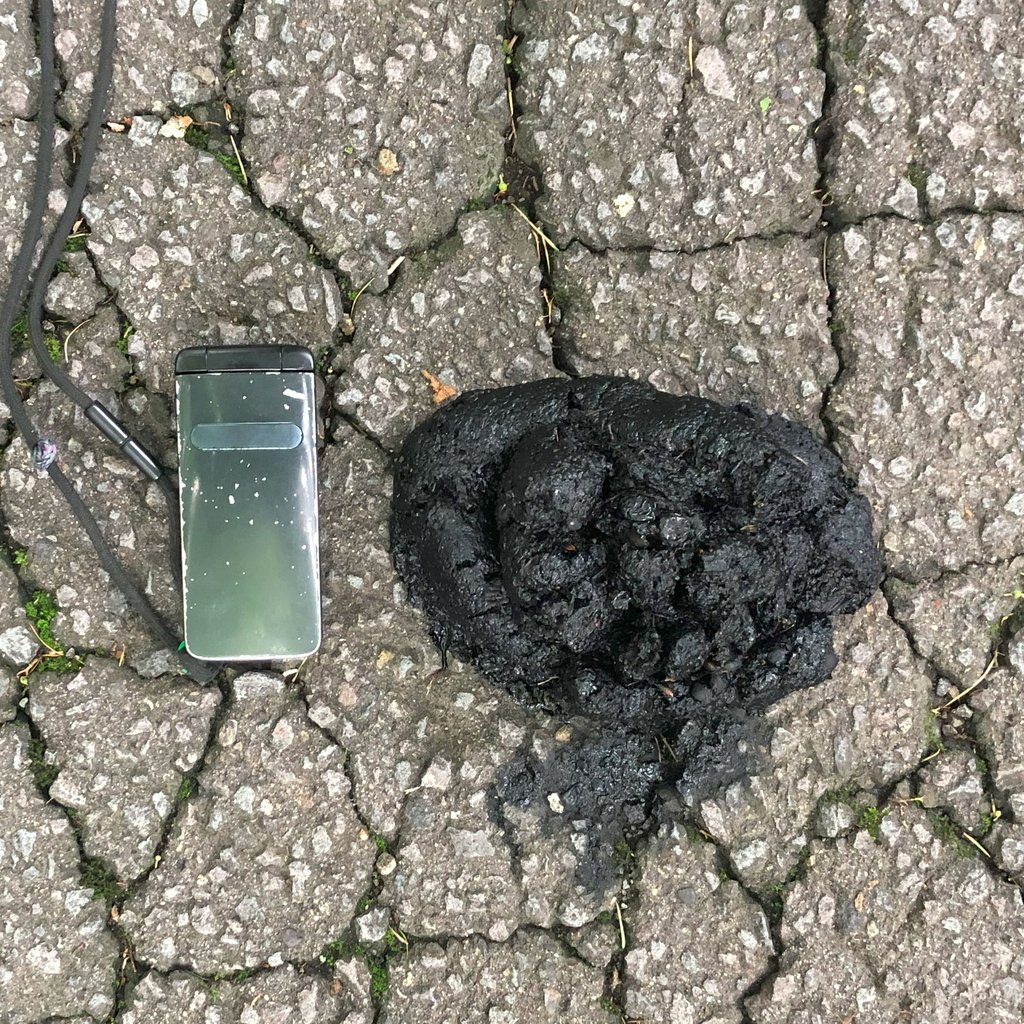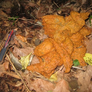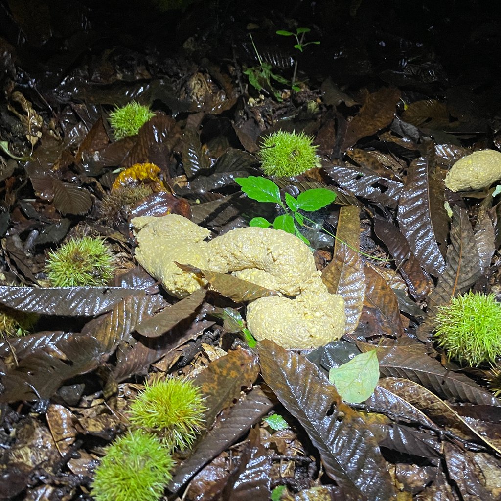 蜂の巣混じりの糞(黄色い部分は蜜蝋)