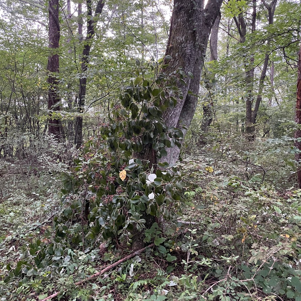 不自然に葉や枝が地面に落ちている場所の上にはクマ棚が出来ていることが多い。